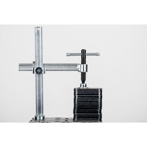 Precise, individual clamping with variable throat depth. Tempered profile and sliding arm for strong, dependable, clamping. T-Bar Handle with rounded ends with smooth-running ACME threaded spindle.