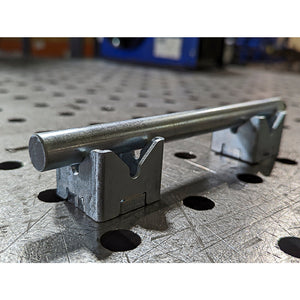 Made from durable A36 tube steel, the FabVee is built to last. The bottom of the V-block features a laser-cut plate that allows for easy mounting to any 5/8" or 16mm industry standard welding table. This gives you the flexibility to use it in your shop or on the go, making it a versatile addition to your fabrication arsenal.