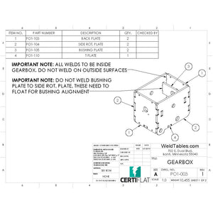 First the quality of the cuts, and hole location were great. Super solid construction and design. As is everything I’ve ever got from you folks. And a little constructive criticism, if you don’t mind. Please put some preservative on the small parts. My gears arrives with surface rust. Not cool for a $400+ product. A few shots of LPS-3 before shipping, and problem solved. And for the two shafts, I’d have preferred to see them made of 4140 TG&P not plain old 4140 mill finished bar stock. If you offered a generic/universal motor mount plate, I’ll bet you’d sell them no problem. Just a simple 1/4” x 3”x 5” plate with 3/4” and 7/8” holes on 3” centers, along with a bushing that’s 1/4” longer than the standard bushing on the drive side. The end user could take it from there. Place the plate over the head of the shoulder bolt, and the drive shaft( along with the longer bushing ), weld the plate to the head of the shoulder bolt, and then adapt the motor of choice to the plate. Everything will pivot as one with the gearbox. All in all, you guys did a great job, but it could use a few refinements that are easy and cheap to do.